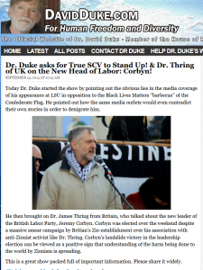 He then brought on Dr. James Thring from Britain, who talked about the new leader of the British Labor Party, Jeremy Corbyn. Corbyn was elected over the weekend despite a massive smear campaign by Britian’s Zio-establishment over his association with anti-Zionist activist like Dr. Thring. Corbyn’s landslide victory in the leadership election can be viewed as a positive sign that understanding of the harm being done to the world by Zionism is spreading.