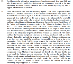 333. In my view, the Claimant’s BELMARSH PRISON SPEECH (2012) was particularly sinister. What the Claimant was, in truth, seeking to do was to signal sub silentio, his unalloyed admiration and praise forthe Belmarsh Muslim prisoners for what they had done, i.e. for being virtuous and brave enough to fight. The Claimant was not only expressing his sympathy and solidarity with the Belmarsh Muslim prisoners’ for their plight, but also approval of their crimes.