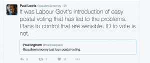 Perhaps surprisingly, the official Labour response is guarded support for these moves, whereas Labour moderates, such as Stella Creasy and Wes Streeting, are strongly opposed.  Ken Livingstone is another dissenting voice, as is financial journalist Paul Lewis. Like him, I agree it would be useful to know more about the impact of voter ID in Northern Ireland – and I’m inclined to agree with his executive summary too: