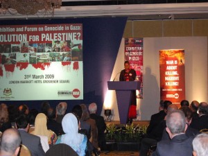 Over 200 participants attended the ‘Exhibition and Forum on Palestine’, London on 31 March 2009, organised by the Malaysian Ministry of Foreign Affairs and the Kuala Lumpur Foundation to Criminalise War. His Excellency Tun Dr Mahathir Mohamad, Malaysia’s fourth prime minister delivered the keynote address. The Forum was officiated by Dr Rais Yatim, Minister of Foreign Affairs, Malaysia. The speakers were Mr Tony Benn, Rabbi Cohen, Ms Lauren Booth, Sir Gerald Kaufman and Ms Cynthia McKinney.