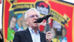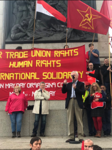 Here you can see the Shadow Chancellor speaking at a May Day rally in Trafalgar Square.