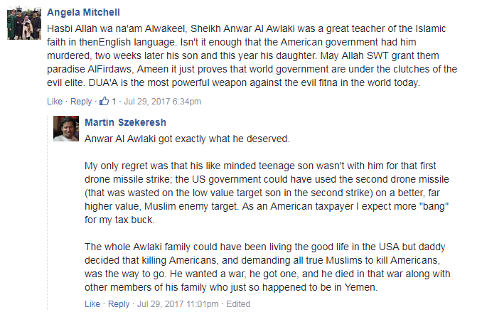 The website 5 Pillars reported on this. The comments on their Facebook page show there is still support for Awlaki in the UK.