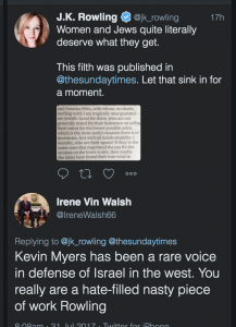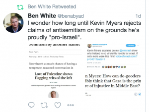 One point of contention was Myers’ apparent approval for Israel.  For some, this cast a different light on the article.  It now seemed crass rather than unambiguously antisemitic.  Others were less convinced that it let him off the hook, and invoked his perversely meaningless screed on Holocaust denial.