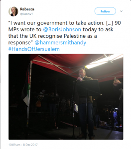 Sure enough, it appears that he spoke at Friday’s “Hands Off Jerusalem” demonstration in London.