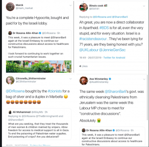 Her willingness to work with Israeli organisations to seek a constructive solution was too much for some supposed friends of Palestinians. Here’s a sample of some of the more hateful responses her efforts elicited, some of them unambiguously antisemitic.