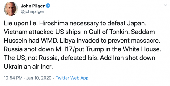 Lots of people are going to have egg on their faces after declaring Iran the victim of a conspiracy. Here’s a tweet from John Pilger, a man who’s clearly not averse to lying to his own Twitter followers, it has since been deleted;
