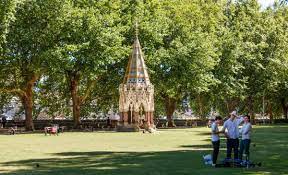If, when you find yourself in the centre of London, as one does, and wish to have a bought sandwich snack and rest for one’s tired old feet, then an easily overlooked space of quiet next to, of all places, the Houses of Parliament, is a green sliver of landscaped grass and plane trees overlooking one of the less hideous views of the River Thames that I now know is Victoria Tower Gardens. I learned the name of this unremarkable and therefore secure spot because it is the preferred site for the United Kingdom’s Holocaust Memorial. Preferred by some and passionately disliked by others, including me and Melanie Phillips, journalist, broadcaster and Big Brain of Jewish Britain (now based in Israel).